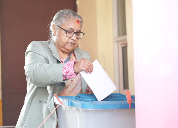 Election voting continues in Nepal, PM Sushila casts her vote
